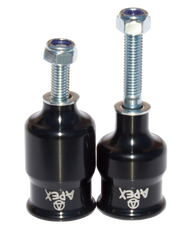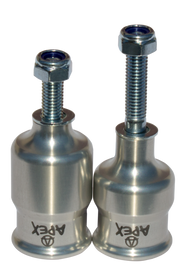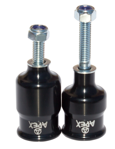 The pegs are made from Apex Australian-made aluminium, and come with high tensile steel bolts to fit onto most scooter decks and forks.